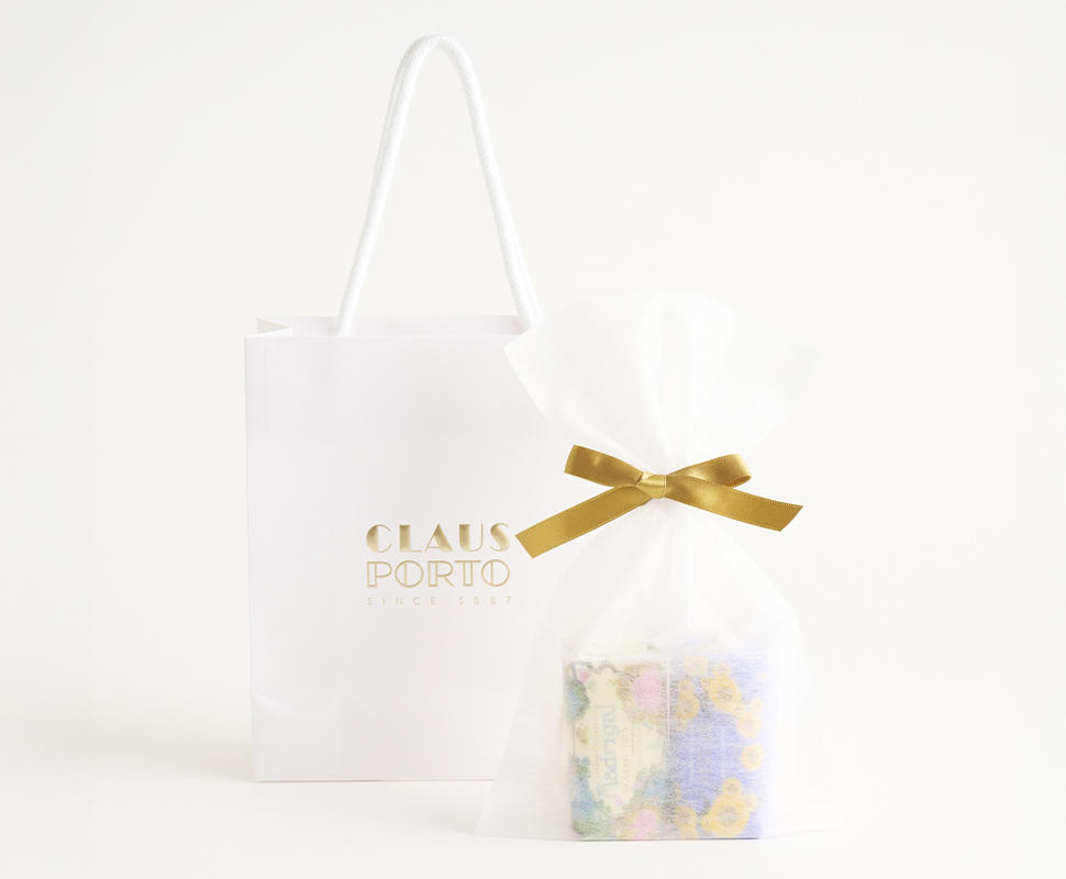 商品を不織布のギフトバッグに梱包し、ブランドショッパーは畳んだ状態でお送りします。