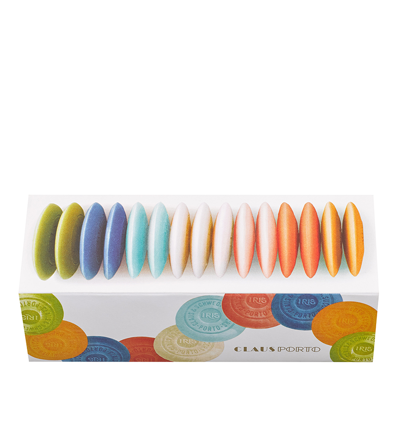 1919年に遡るクラウス ポルトの象徴的な商品のひとつであるカラフルなゲストソープ「IRIS(アイリス)」の復刻版。