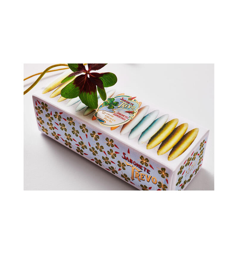 世界的に幸運のシンボルとして知られる四つ葉のクローバー(Trevo)。また希望、 信仰、愛の象徴でもあり、ポジティブなエネルギーのバランス、月の満ち欠け、 四季や、自然の要素を表現しています。トレボゲストソープボックスには、ALFACE 、CERINA、 BANHO、FAVORITOの4つの魅力的な香りのゲストソープが15個詰められています。心を落ち着かせるアルファスアーモンドオイル、リラックス できるセリーナ、体にエネルギーを与えるバーニョ、そして活性化させてくれ るファヴォリトでバランスを取り戻します。お守りのようなラッキーチャーム はいつでも気分を向上させてくれます。