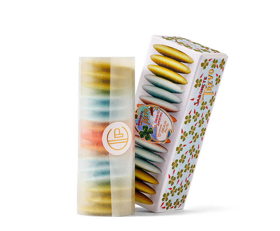 また希望、 信仰、愛の象徴でもあり、ポジティブなエネルギーのバランス、月の満ち欠け、 四季や、自然の要素を表現しています。トレボゲストソープボックスには、ALFACE 、CERINA、 BANHO、FAVORITOの4つの魅力的な香りのゲストソープが15個詰められています。